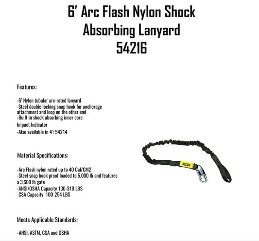 JELCO 6' Arc Flash Nylon Shock Absorbing Lanyard 54216