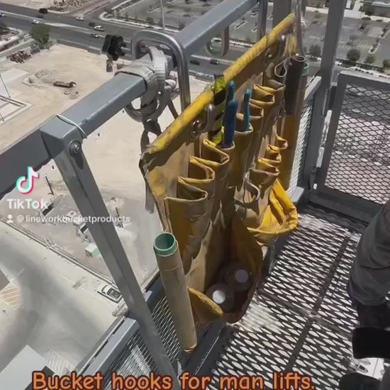Designed for linemen, utility contractors, and electrical crews working on overhead distribution systems who need secure hanging points for lineman tools and utility equipment in elevated work platforms.