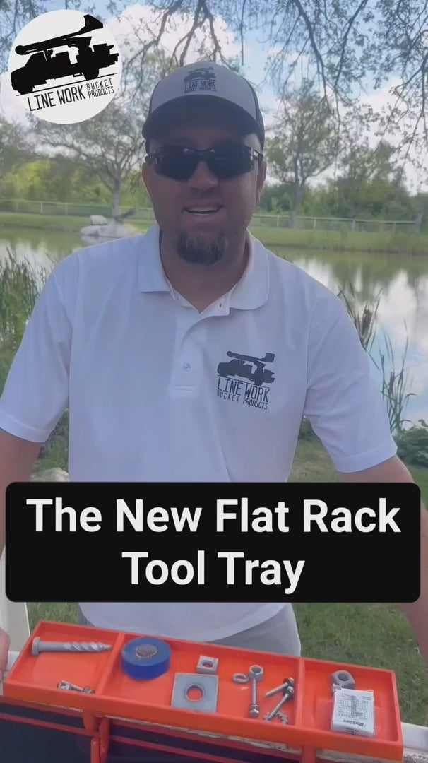 The Line Work Bucket Products 1028 Flat Rack Tray is used by linemen to organize hardware and small parts inside the bucket during overhead distribution work. Designed for bucket mounting, it keeps bolts, connectors, and tools secure and within reach while working aloft.